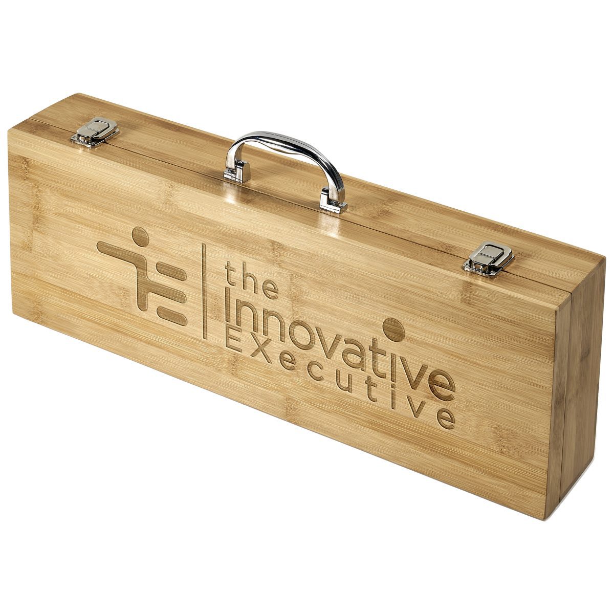 - presented in a bamboo box with chromed carry handle and trims