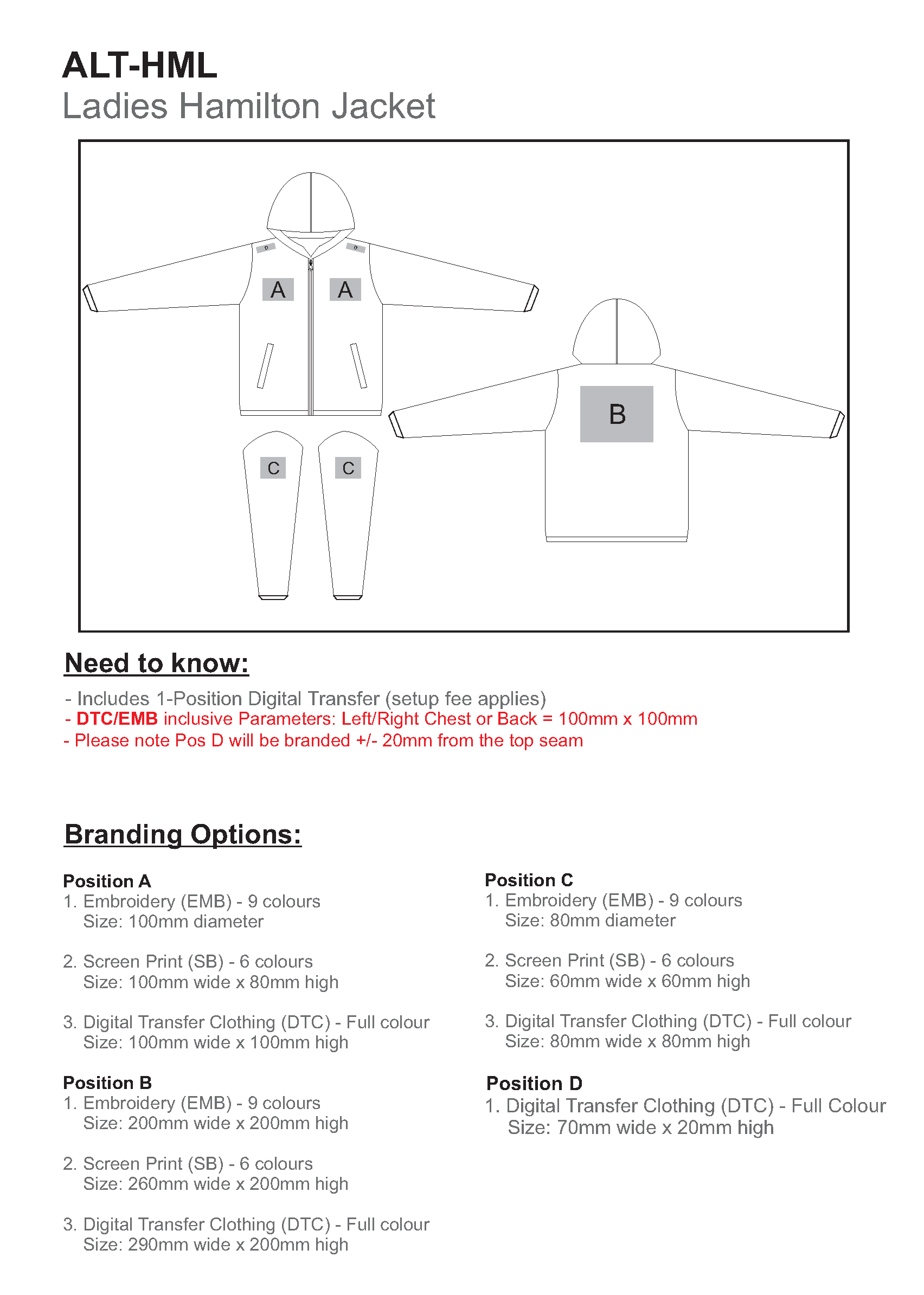 Product Specifications * All sizes measured in cm. Carton Dimensions (in cm)59H X 64L X 40W1/2 Chest53Carton Weight (in kg)19Quantity per Carton15 Branding Guide